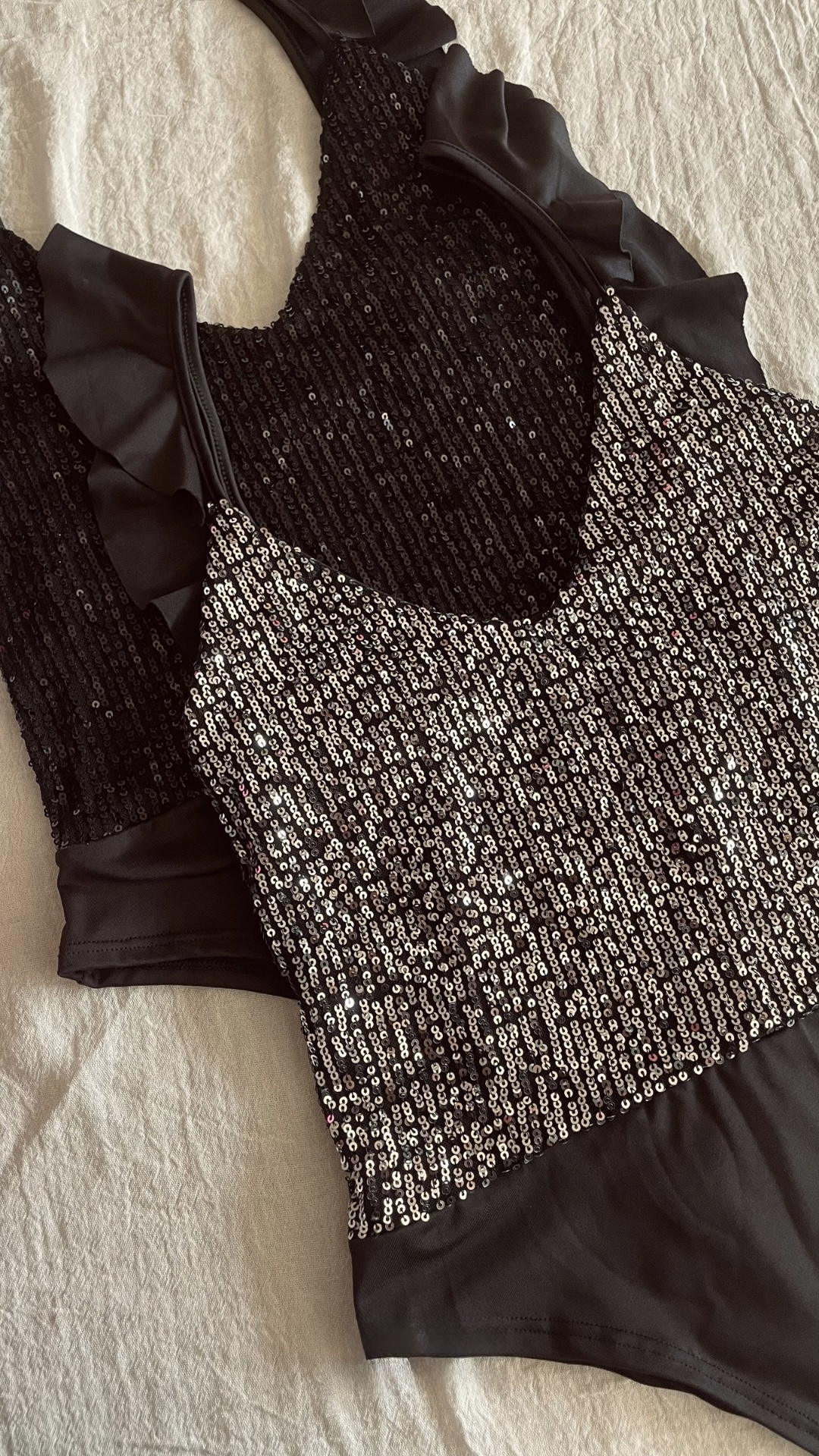 Body microfibra con lentejuelas, mangas con vuelo.